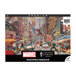 Rompecabezas de 1000 piezas y poster mostrando artes diferentes de la colaboración de Thomas Kinkade y Marvel. Prepárate para una experiencia de ensueño con este rompecabezas premium de 1000 piezas, que captura la esencia del universo de Deadpool en una obra única de Thomas Kinkade.