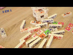 - Incluye: 28 fichas de dominó, 1 rompecabezas de 24 piezas, 1 memoria con 24 tarjetas