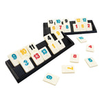 Contenido: 106 fichas de Rummy con los números impresos y 4 bases plásticas para fichas.